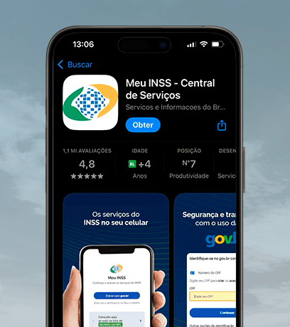 Instale o aplicativo Meu INSS no seu celular pela Play Store (Android) ou App Store (iPhone).