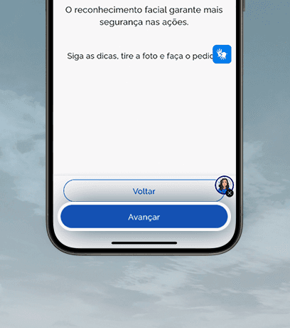 Posicione o rosto corretamente e aguarde a validação para prosseguir com os passos seguintes e concluir a solicitação.