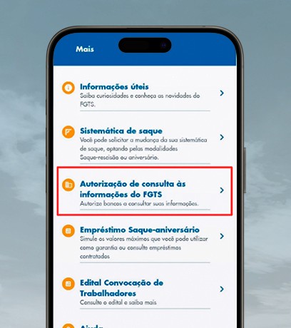 Em seguida, selecione a opção "Autorização de consulta às informações do FGTS".